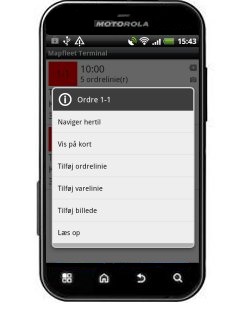 På MapFleet terminalen kan der ændres status på ordre (ikke uført, igangsat, afsluttet, annuleret) og ordreliner kan editeres eller der kan tilknyttes nye ordrelinier. Man kan selvfølgelig også oprette nye ordre og tilknytte kunder og ordrelinier til disse. Der er følgende muligheder for at knytte ordrelinier til en ordre: